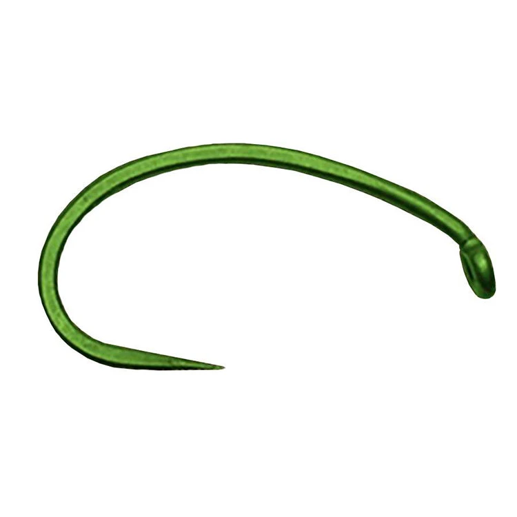 Down eye, heavy wire, Czech style sproat bend, barbless needle point, matte green finish. Uses: scuds, Czech nymphs, caddis nymphs. 25 per pack