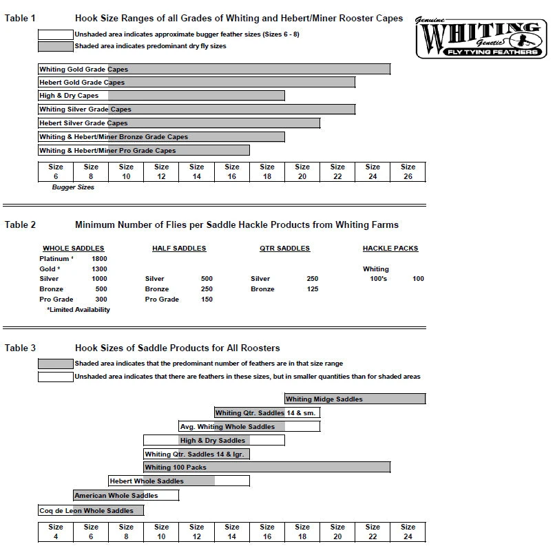 With long supple quills, incredible barb density and a full range of hackle sizes, Whiting Dry Fly Capes are the industry standard for quality and value. Pro Grade capes contain fewer feathers at the small end of the range and more than usual in the 14 to 16 range. They represent a great value for the amateur tyer. Brown may be dyed if the natural is unavailable; other colors are natural unless specified as dyed. The new barred dark ginger color is an excellent substitute for hard-to-find cree.