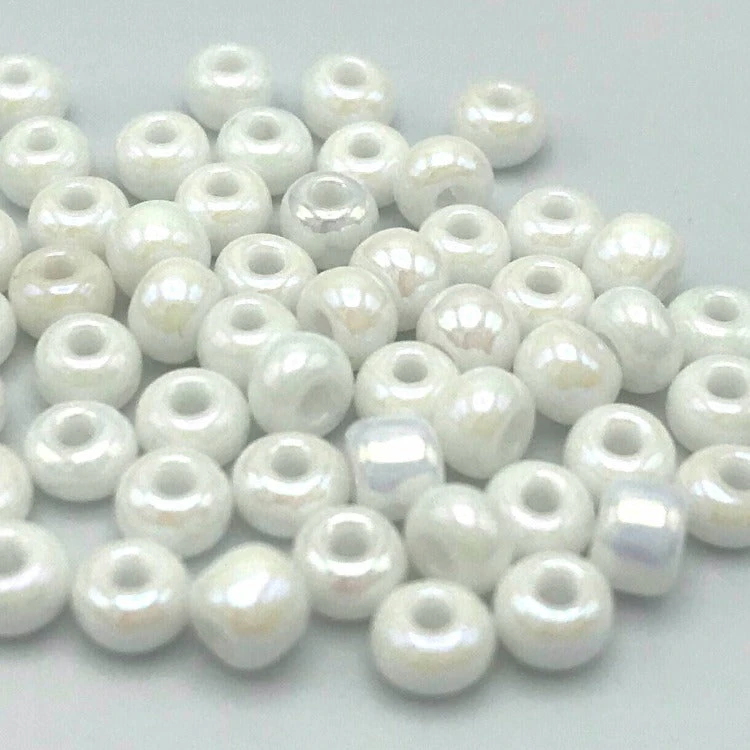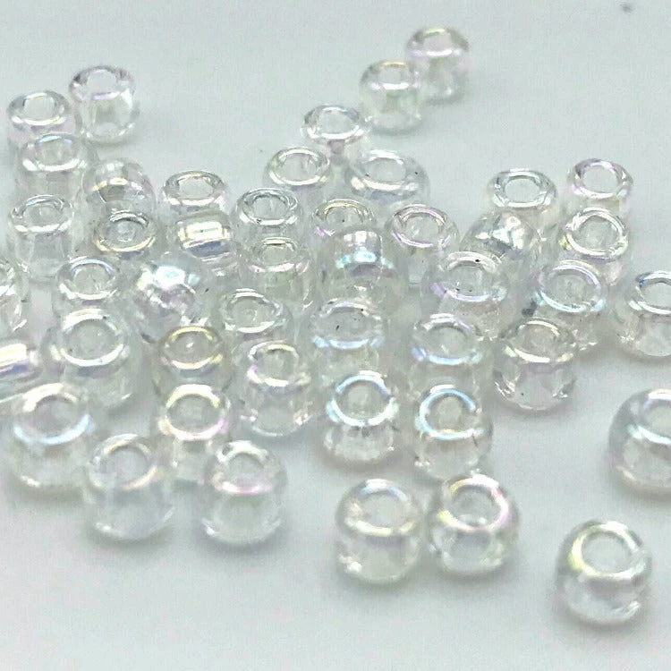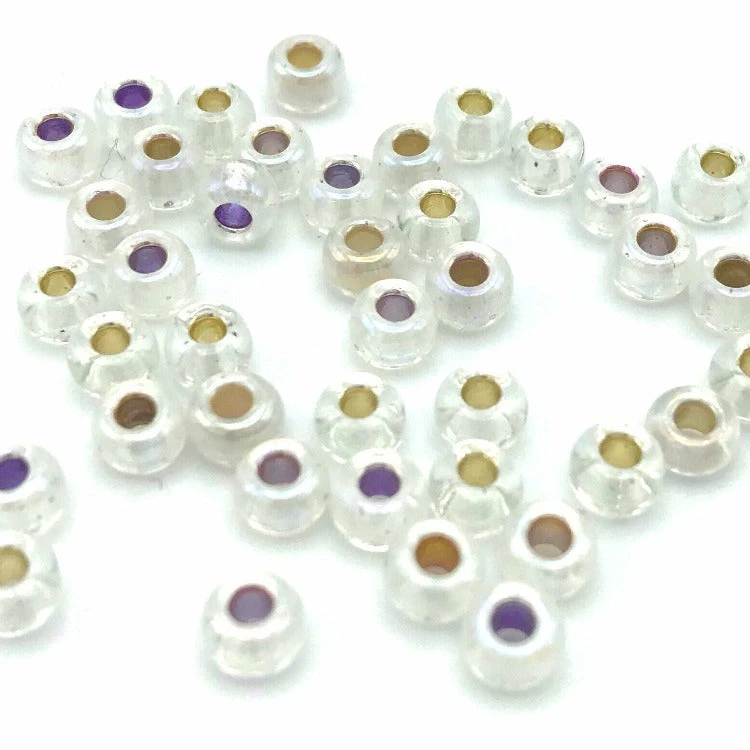5 sizes of beads with special treatments to create visual effects. iridescent (irr.), transparent (tr.), opalescent (op.) or silver lined (s/l), in 13 colors (some colors not available in every size). Bead diameter measures approx. 1.3mm for midge, 2.0mm for small, 2.8mm for medium, 3.5mm for large. About 20 to 100 beads per package, depending on the size you choose.