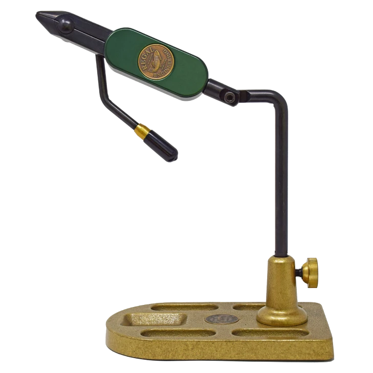 Regal’s flagship series, the Medallion, is an iconic and often imitated design that is the pinnacle of vise technology. All Medallion Series vises revolve around a 360º axis and articulate 220º up and down. From tarpon to billfish, pike, musky, salmon, and bass, the Medallion Vise with Big Game Vise Head has you covered. One of Regal’s most versatile heads, it can accommodate hook sizes from 22 to 5/0 and features two hook grooves machined into one side of the jaw. With the Bulldog Bite Regal Vises are known for, the Big Game Head holds hooks both large and small with an extremely secure grip. This is a great vise to consider if you enjoy tying a wide range of sizes. For optimum customization, you can choose one of three bases – the Traditional Pedestal, Pocket Pedestal or C-clamp. And finally, we stock this vise head in Black or you can custom order in these colors – Royal Blue, Cool Lime, Orange Ember, Rustic Pine or Ultra Violet.