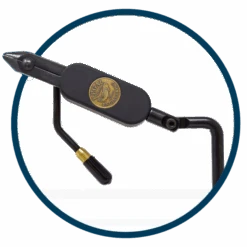 Peak’s bobbin rest assembly can be added to any 3/8″ diameter, standard, vise riser. It consists of a cross bar mount, stainless steel rest, mountain shaped thread rest, and adjustment bolt. Distance of the bobbin to the fly can be set with the black thumb screw.