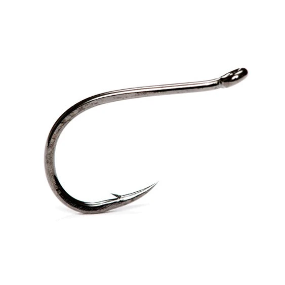 Wide gape and super sharp points make this a perfect hook for tube flies. The slight up-eye makes it a favourite pattern for trailing stingers on steelhead and sea trout patterns. Strong hook with forged bend, short shank and small ring-eye makes this the go-to technical hook for many fishermen. Ideal for salmon, steelhead and sea trout tubes or as flying stingers off long shank patterns. Black nickel finish, slight up-eye. 15 per pack